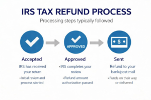 Then use “Where’s My Refund?” (IRS.gov or IRS2Go app) for status.