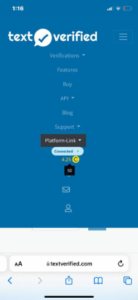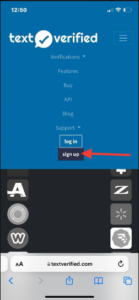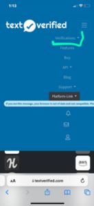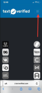 1. Go to https://www.textverified.com and click the three-dash menu icon in the top corner to begin the sign-up process.
