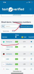 7.If you need a verification code for a bank, browse or search the list. For example, a MoneyLion code costs approximately $0.75, which is very affordable.